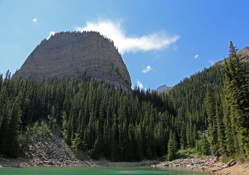 We suggest staying at the picturesque Fairmont Chateau Lake Louise on the lakeshore, which is fabulous accommodation and will also allow you to prepare for day hiking. The Big Beehive trailhead starts beside the chateau, and approximately 3 mi / 4 km in, you will come across Lake Agnes Tea House. Get an early start if you wish to avoid other hikers, as the teahouse is trendy in summer (forget winter). Eventually, you will arrive at Mirror Lake, which, as the name suggests, mirrors its surroundings, including the Big Beehive overlooking the stunningly glass-like water.